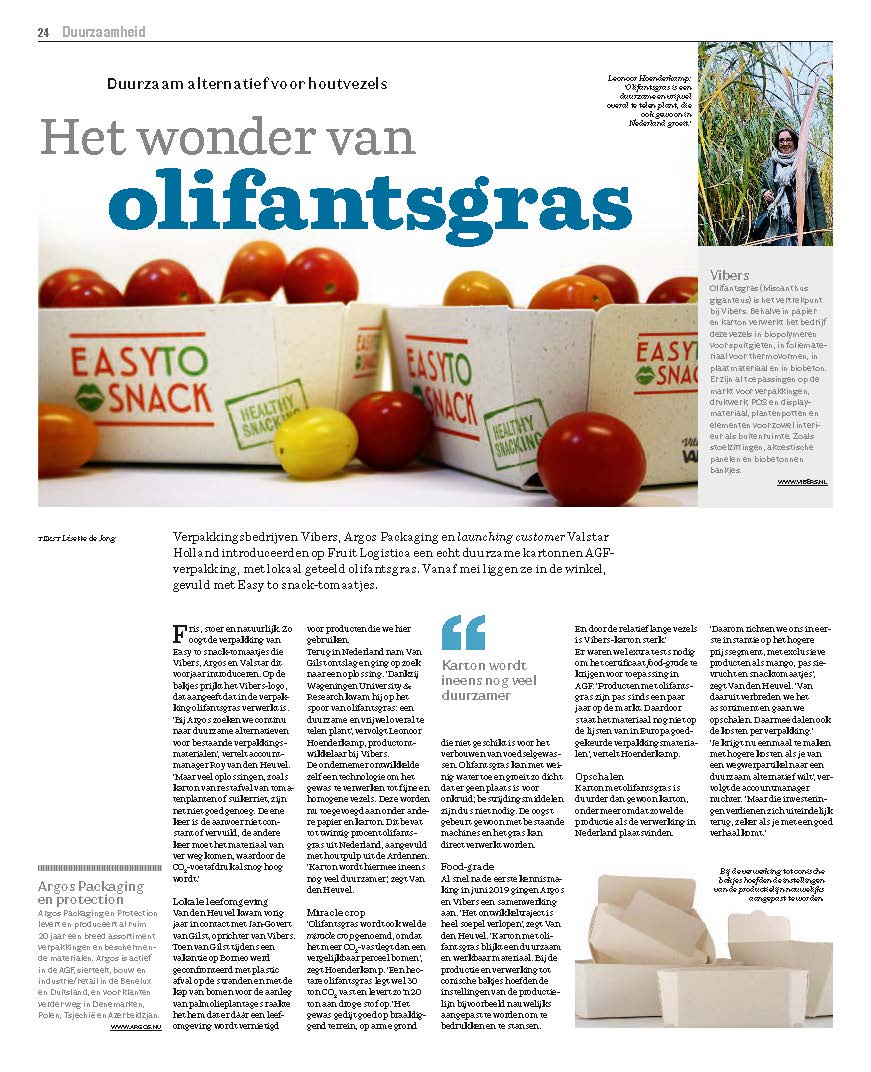 We were interviewed for the latest edition of Verpakkingsmanagement along with Vibers about our collaboration.Together with Vibers and Valstar, we have introduced the first tomato packaging made of elephant grass on the market.